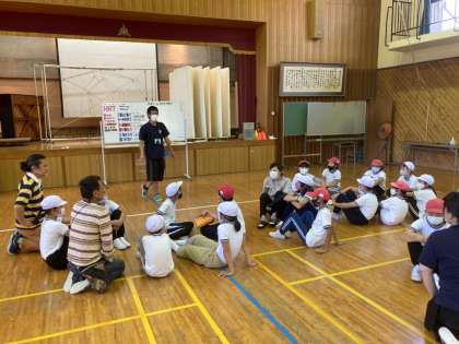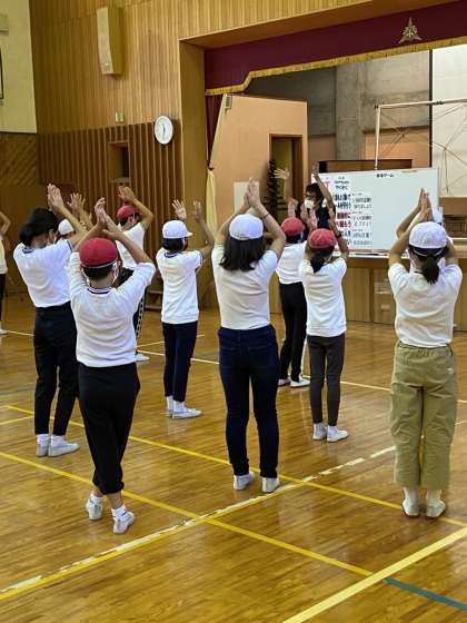 荷物を置いて、体育館でハートアクティビティでコミュニケーションゲームを楽しみました。