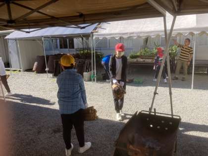 カレー作りがスタートしました。各班でご飯を炊き、カレーは大鍋でみんなで作ります。うまくできるかな?