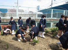 6年生になってクラスみんなでの初作業。茶畑にお茶の苗を植えました。まずは雑草を取り、穴を掘って肥料を投入。いよいよ苗を植える段階になると、子ども達のワクワクした気持ちが畑いっぱいに満ちてきました。お茶の手入れは難しいと聞きます。水やりを欠かさず、丁寧に育てていきたいと思います。