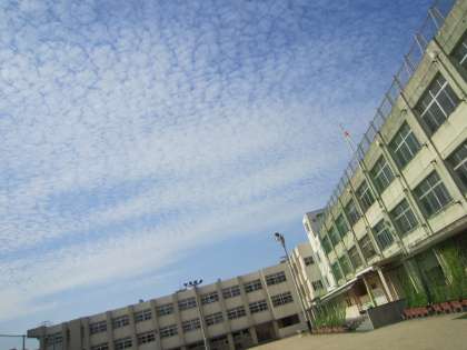 おはようございます。今朝は大きな空一面にうろこ雲が広がっていました。厳しい暑さも少し和らぎました。朝夕の風の爽やかさなど、秋を感じることもできます。内代小学校の田にも稲穂が実りはじめました。