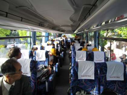 晴天に恵まれ、朝の爽やかな空気の中で出発式を行い、7時10分学校を出発しました。お昼まえにはパルケエスパーニャに到着し最初の活動であるパエリア作りを行う予定です。