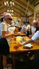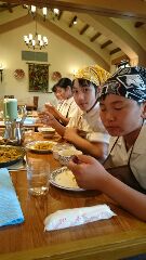 スペイン村に到着しました。昼食はパエリア作りです。シェフに作り方を教わった後、それぞれのグループで料理に取りかかり、出来上がったパエリアを美味しくいただきました。何回もおかわりをしている子がいました。