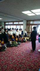 朝食を済ませ、閉舎式を終えて鳥羽水族館へ向けて出発です!水族館ではセイウチのお笑いショ—やイルカショ—、様々な海の生物の展示等が待っています。では、発車オ—ライ!