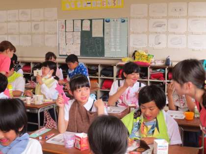 今日も子どもたちは、「体験から学ぶ」活動をしました。歯科衛生士さんが来校され、前半は歯周病の原因と予防策について、ていねいに説明していただきました。後半は、薬品で口内の汚れを赤く染めだし、歯ぐきをふくめ歯を1本1本ていねいに磨く練習をしました。赤く染まった歯をお互いに見せ合いながら微笑む子、少し恥ずかしそうに口元を隠しながら歯を磨く子、いろいろな表情を見せる中、時間が経つにつれてだんだんと真剣な表情で汚れを落とす子が増えていきました。勉強するにも、運動するにも、なにより健康に過ごすために口内のケアは大切であり、今日学んだことをずっと続けてほしいものです。
