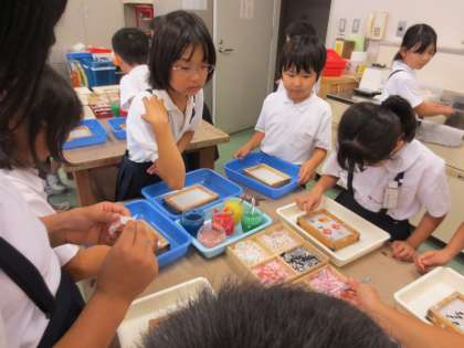 初めに、紙漉き体験をしました。一人2枚のはがきを作りました。牛乳パックからどういう手順で作るかを丁寧に説明してくれ、みんな楽しそうに取り組みました。