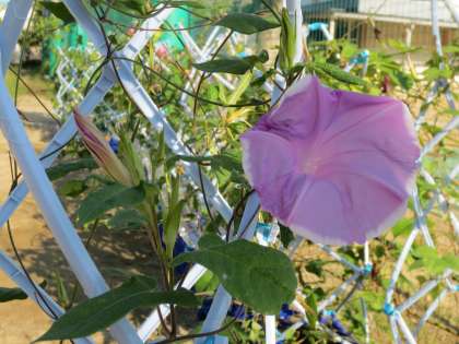 5月より育てていたアサガオですが、育ちが悪く、なかなか花をつけませんでした。暑さのせいだったのでしょうか。