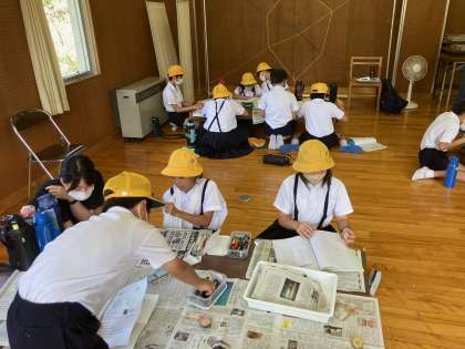 林間最後のアクティビティはクラフト製作。個人のおみやげのキーホルダーとクラスみんなでカレンダーを作ります。記念になる作品にしましょう!