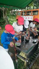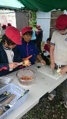 只今カレー作りの真っ最中です。なれない手つきで奮闘しています。どんなカレーができるでしょう。