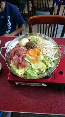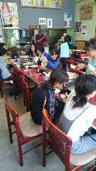 2日目の夕食です。今晩のメニューはすき焼きです。今日は山登り、カレー作り、焼き板制作、凧揚げ等行事がてんこ盛りだったのでさぞかし子どもたちはお腹もすいているでしょう。それではいただきます。