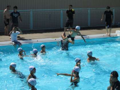 テントを無事張り終えてプールで楽しみました。換水したてのきれいな水で気持ち良く遊ぶことができました。