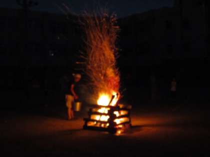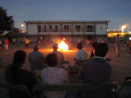 「愛の火・友情の火」は天を焦がし、キャンプファイヤーは進みます。PTAのお父さん方お母さん方、来賓の方々も参加し、スタンツが盛り上がってきています。
