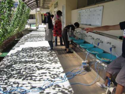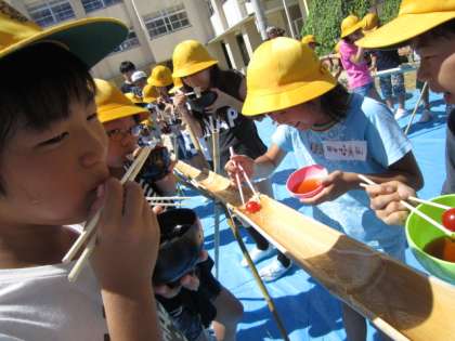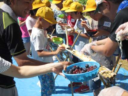 そうめん以外に、トマトも流れます。ブドウも流れます。