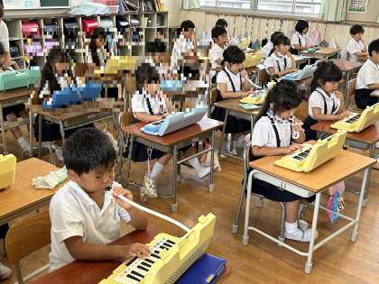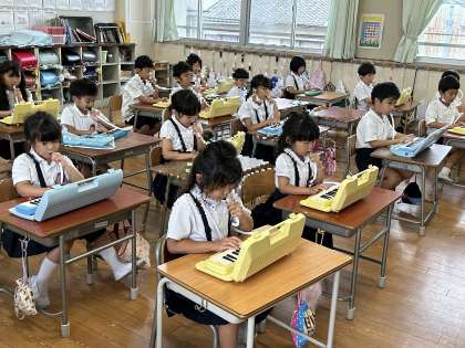 音楽で鍵盤ハーモニカの演奏に取り組んでいます。