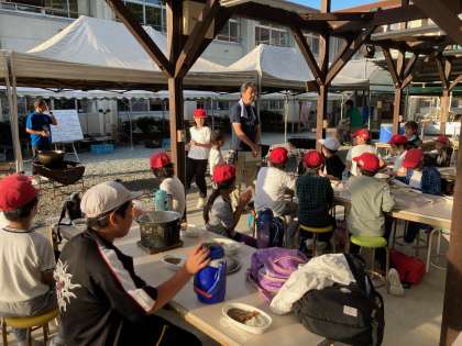 みんなよく力を合わせて頑張ってくれました。ようやく出来上がってきました。みんなお腹空いているので、ハイテンションです。さあ配膳です。