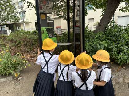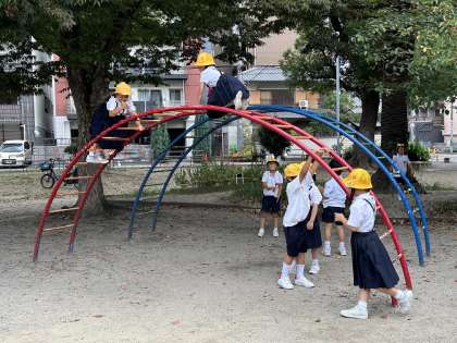 9月8日(金)に生活科の学習で内代公園に「こうえんたんけん」に行ってきました。学校の目の前にあり、普段よく遊んでいる子も多い公園ですが、どんな設備があり、どんな人が利用しているかなどをみんなで探しながら見て回りました。ちょうど草抜きやトイレ掃除をされている方がいて、公園はみんなが安全に利用できるようにそれを支えてくれる人がいるということや、いろんな人が利用するということに気付くことができました。