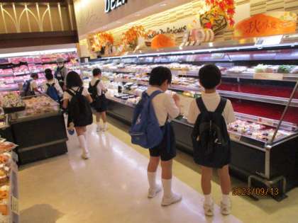 普段、買い物に来たことがある児童もいたようですが、普段とはちがい、そこで働く人からの話を聞きながら、スーパーマーケットがたくさんのお客さんに来てもらえるようにしている工夫についてなど学んでいました。