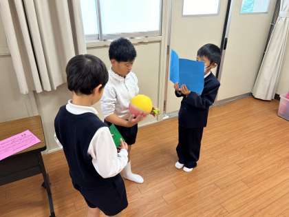 生活科の学習で、2年生の子どもたちが「おもちゃランド」を開催して、1年生の子どもたちを招待しました。