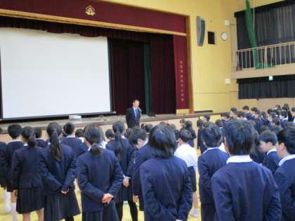 冬休み中の暮らしについてのお話をしました。特に公園での遊び方や自分の身の守り方など、スライドを使って、説明をしました。冬休みの間、健康に気をつけ、3学期には元気に学校に登校できることを願っています。
