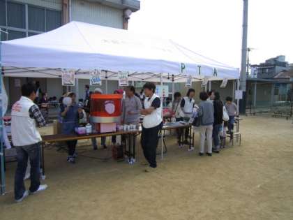 PTAのブースではわたがしを販売しました。ピンクや水色の色つきのわたがしも売られていて、子どもたちに大人気でした。