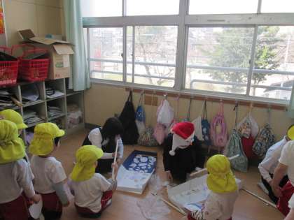 3歳の子はどんな遊びをしているか、何をしたら喜んで楽しんでもらえかを3年生で考えながら計画をしてきました。今回は、「宝さがし」「ボーリング」「クイズ」「魚つり」「玉入れ」「くじびき」の6つのゲームを3年生で企画し、準備をしてきました。