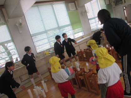 地域の保育園などに通う3歳児の子を小学校に招待し、スマイル交流会を行いました。