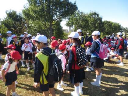 秋晴れの空の下、全校遠足に行ってきました。6年生にとっては小学校生活最後の全校遠足。もっともホッとしたのは、正直、学年ごとに集まった生き帰りの道中ではなかったのではないでしょうか。道中では6年生の大きな笑い声が響いていました。