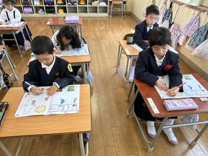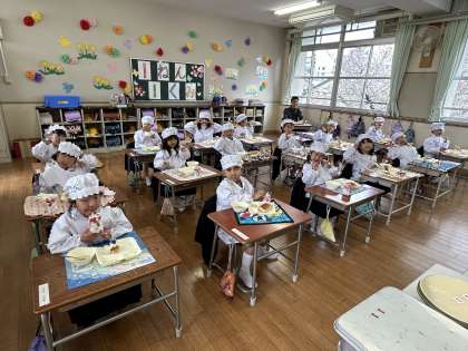 初めてのことばかりですが、少しずつ学校での生活にも慣れて、自分たちでできることも増えてきました。今は、6年生に手伝ってもらいながら給食の準備をしていましたが、来週からは自分たちで用意をしていきます。