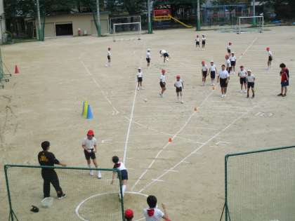 新体力テストを行う時期になりました。50メートル走など学年に応じて全部で8種目にチャレンジします。本日は全学年でソフトボー投げを実施しています。ボールを枠の中に投げるのに苦労していました。