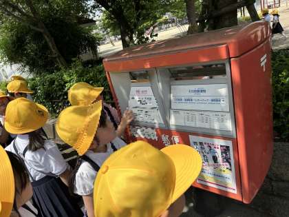 生活科の学習で公園や学校の周りを探検しに行ってきました。内代公園は学校の目の前にあり、普段よく遊んでいる子も多いですが、どんな設備があり、どんな人が利用しているかなどをみんなで探しながら見て回りました。学校の周りも標識や信号機など、いろんな目印を探しながら歩きました。学校に戻ってからは、ワークシートで活動の振り返りをしました。