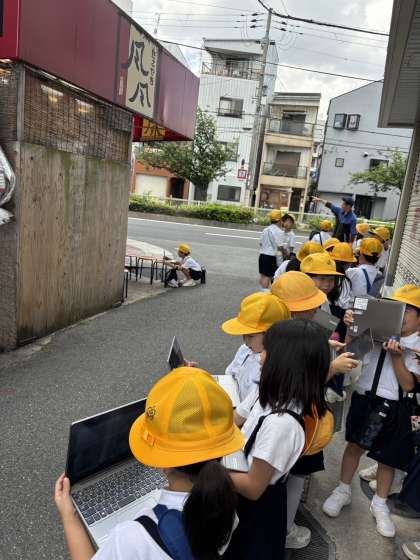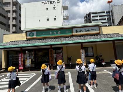 2・3時間目に町たんけんに行きました。馴染みのある場所やお店もあれば、行ったことのない場所やお店もあり、発見や気づきがたくさんありました。インタビューをした郵便局では郵便のしくみが書かれている冊子とくまの定規をプレゼントしていただきました。丁寧に質問にも答えていただき、子どもたちも真剣に聞いていました。ゴールの内代公園に着くと「楽しかった〜!」と口をそろえて言っていました。またおうちでも聞いてみてください♪