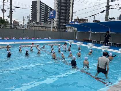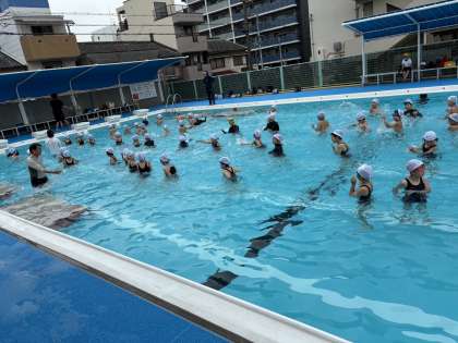 1年生は初めて、2年生は1年ぶりのプールでした。