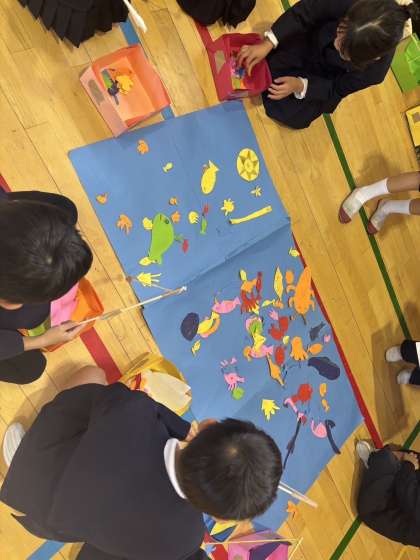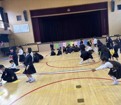 2時間目に1年生を招待しておもちゃランドをしました。クラスや学年でリハーサルもして準備はばっちりです。空気砲、もぐらたたき、わいわい魚つり、玉とばし、紙コップロケット、とことこ車、じしゃくの迷路、ペットボトルボーリングの8つのコーナーを1年生は楽しそうに回ってくれました。最後に折り紙のこまとくるくるヘリコプターもプレゼントし、一緒に遊びました。教室に帰ると「1年生が喜んでくれてよかった」「ありがとうと言われて嬉しかった」などの感想が聞かれました。いい思い出ができました♪