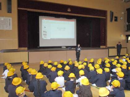 本日地震・津波による避難訓練を行いました。火災とは違って、慌てず落ち着いて避難することが大切で、児童もそれに従って避難することができました。講話では阪神淡路大震災の話を用いながら、地震・津波における対応を学習しました。