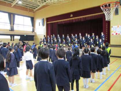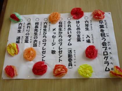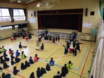 6年生に関するクイズや在校生からの言葉のメッセージ、6年生から太鼓の演奏のプレゼントなど心あたたまる行事となりました。