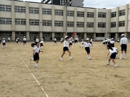 6年生が遊びを企画してくれて、一緒に遊びました。「こおりおに」と「しっぽとり」をして楽しく過ごしました。もうすぐ6年生は卒業です。