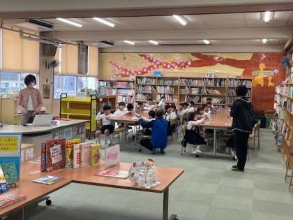 図書館の使い方を覚えたり、1・2年生で学校を探検したりと、もりだくさんな