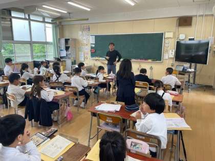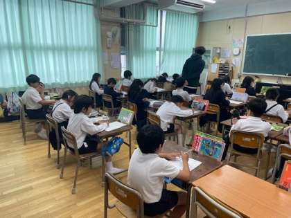 教室では、理科の学習で意見発表をしたり、算数のアンケートに答えたりしていました。