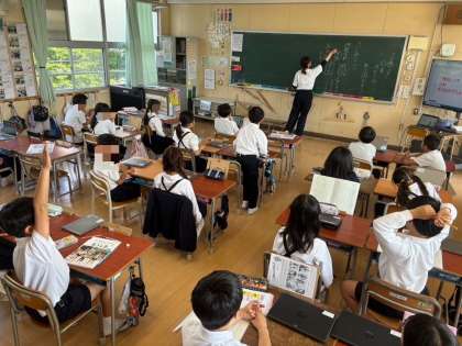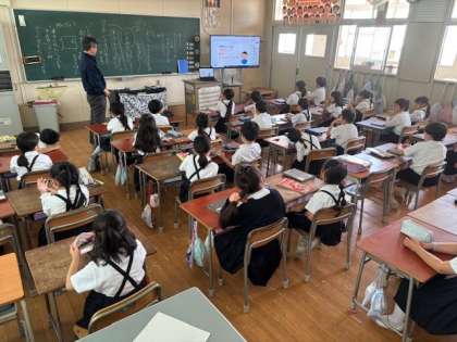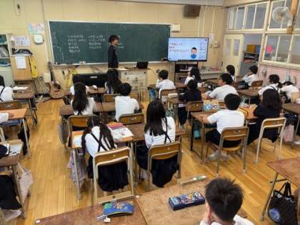 ※2年1組小濱先生は校長室から全校生へ向けてお話をしていたので、2年1組は交代で校長先生が入っていました!