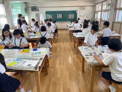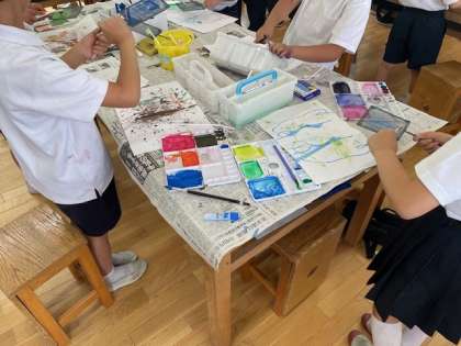 様々な技法を使って表現する絵画に挑戦しました。子どもたちの想像力の広がりと型にはまらない自由さが素敵な作品を生み出していました。