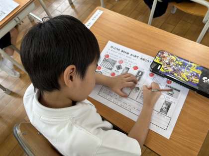 昨日は楽しみにしていた公園たんけんでした。公園にあるものや学校のまわりにあるものを見つけながらたんけんしました。公園は、いつも遊んでいるところですが、ベンチや水飲み場、車止め、公衆電話、街灯など初めて発見するものも多かったです。学校のまわりには、カーブミラーや止まれの標識、子ども110番の家のマークなどを見つけることができました。どれも、気持ちやすく公園が利用できるためにあったり、命を守るためにあったりする大事なものなんだと学習しました。