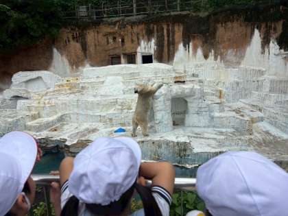 お天気の心配がありましたが、無事1,2年生で天王寺動物園に行くことができました。子どもたちはこの日が来るのをとても楽しみにしていました。ようやく行けることに大喜びで、「フラミンゴが見たい!」「レッサーパンダが楽しみ!」とうきうきわくわくの子どもたちでした。実際、たくさんの動物を目にすると、「わあ!大きいなあ。」「目がかわいい!」「ちょっとくさいな。」など実際近くで見ることでしか得られない驚きや感動がありました。たくさん歩いたからか、少し疲れた様子だったので、早めに昼ご飯を食べました。昼ご飯を食べてからももう半分を見学し、学校に帰りました。学校に帰る頃には水筒の中身がからっぽになっている児童もいました。暑かったので週末ゆっくり休んでください!早朝のお弁当作りありがとうございました。