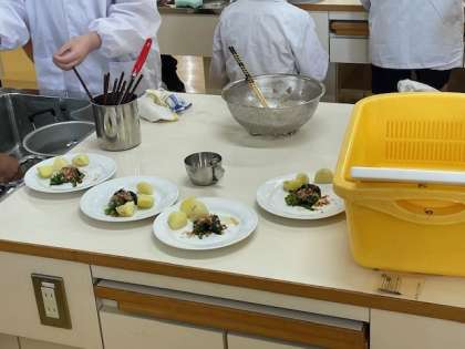 5年生の調理実習がありました。「ほうれん草」と「じゃがいも」を使った料理です。班で協力しながら、おいしそうに調理できました。