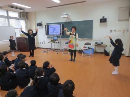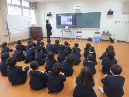 ヤクルトの出前授業がありました。朝ごはんの大切さやウンチチェックの話を聞きました。毎日ウンチを出そう!という話にはクスクスの表情。でも、体の中の役割もとてもわかりやすく説明していただき、真剣に聞いていましたよ。最後に「おなか元気!(^^)!」のダンスを教えてもらい、みんなで可愛く楽しく踊っていた子どもたちです。
