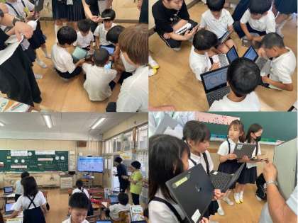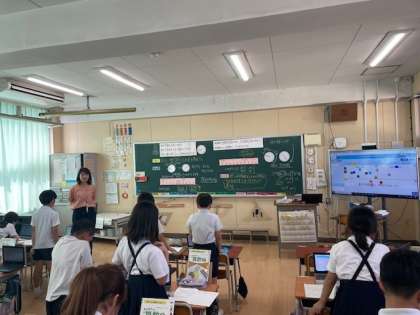 本校では算数科の授業を中心に研究を行っています。本年度1回目の授業を行いました。子どもたちは、自分のやり方で答えを見つけ、友だちと意見交流を行いました。PCを使った活動にも慣れ、充実した学習時間となりました。