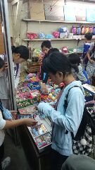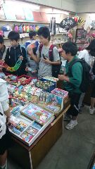 只今買い物中です。昔の旅館街の土産物店での買い物、情緒があります。