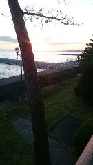 保護者の皆様おはようございます。素晴らしい日の出で す。(逆光のため太陽の輪郭がはっきりしません)修学旅行2日目のスタートです。