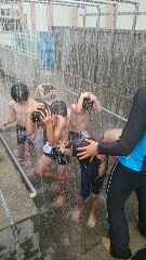 待ちに待ったプール水泳です。快晴の下というわけではありませんが、気温は高めで無事に水泳指導がスタートしました。1年生は小学校での水泳は初めてですが、どの子も楽しそうに活動しています。2学期にはどれくらい泳げるようになっているでしょうか。