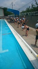 本日の水泳指導の最後は中学年です。中学年も決まりにしたがって活動できていました。入水前にはバディにより互いに確認し合う練習もしました。