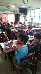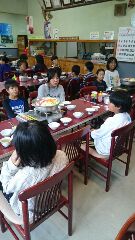 待ちに待った夕食です。お腹を空かした子どもたちが集まってきました。今晩のメニューは豚味噌鍋です。行儀よく残さず食べましょうね。