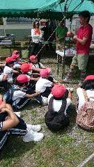 さあ今からカレー作りです。4年生の時の校庭キャンプで経験しているとはいえ、1年前の事ですので忘れている可能性があります。宿のご主人からカレー作りについて改めて教えていただき、作業を始めます。